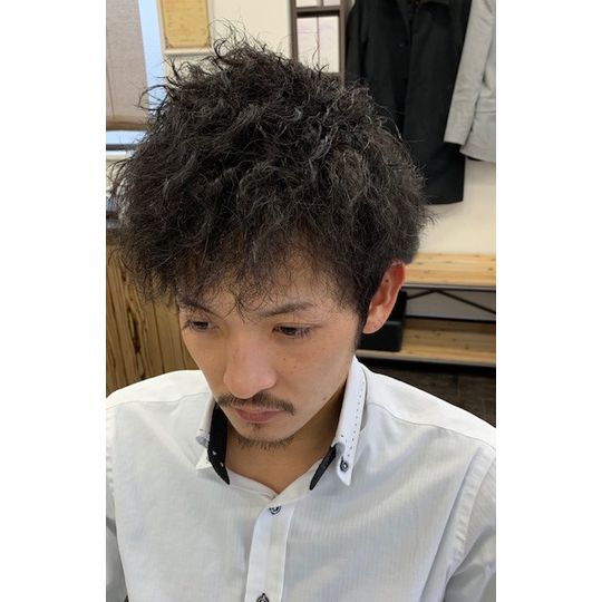 パーマでゆるふわに仕上げ、ムースまたは柔らかいワックスでセット! -
