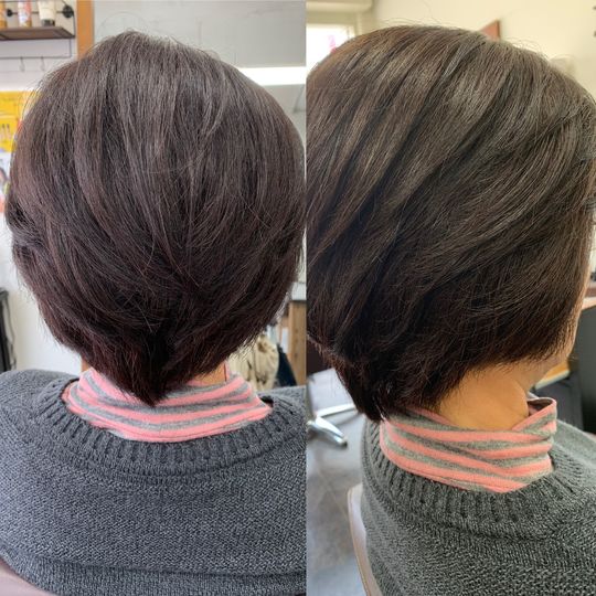 すそは長めに残して、ボリュームが出にくいとこにしっかりとボブレイヤー入れてます。 -